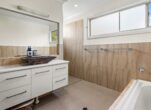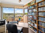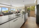 The modern kitchen is a chef’s delight, featuring sleek granite benchtops, a gas cook top, and a butler’s pantry for added convenience. Adjacent to the living area, a well-sized study provides a perfect workspace, with this entire area complete with access out onto the sizeable entertainment deck, offering views of the surfing reserve and mountain range-ideal for summer gatherings or tranquil evenings.