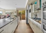 This level also boasts a beautifully appointed full bathroom with exquisite tiles and a large shower. Alongside lies the laundry equipped with generous storage and a linen chute that connects to the upstairs bathroom.