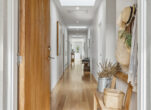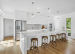 Upon entering you are greeted by an expansive hallway leading to an exquisite kitchen featuring stone bench tops, double ovens, an integrated dishwasher, and induction cooktop.