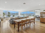 The open-plan dining and living areas seamlessly connect to the outdoor entertainment area, overlooking a large, heated pool – a haven for year-round enjoyment and relaxation.