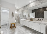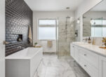 The bathrooms are equally impressive, adorned with floor-to-ceiling tiles and floating double vanities, with the main bathroom offering a luxurious bath for added comfort.