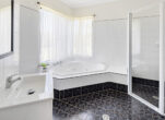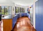 – Open-plan kitchen, dining and living with high ceilings and timber floors