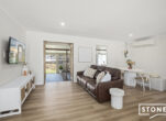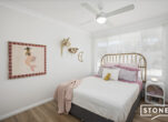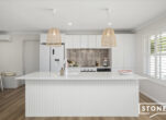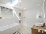 At the heart of the home is a stunning kitchen featuring modern appliances, stone benchtops and elegant timber shutters – perfectly designed for both everyday living and entertaining. The light-filled main bathroom is spacious and sun-drenched, enhanced by a skylight that fills the space with natural light.