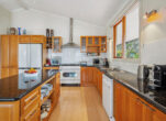 There’s a beautiful use of timber throughout, featuring a striking Black Heart Sassafras internal door. Celery Top Pine has been extensively incorporated in the weatherboards, windows, decking and kitchen, adding warmth and character to the home.