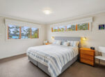 Upstairs on the top level, you’ll find three generous bedrooms and a large, well-appointed bathroom plus handy laundry cupboard. The master suite enjoys a good view of the bay, along with a walk-in robe and ensuite.