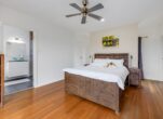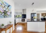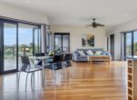 At the heart of the home, the open-plan living and dining area is both inviting and functional, centred around a cosy fireplace for cooler evenings. Large glass doors open seamlessly onto the verandah, creating an effortless indoor-outdoor connection that’s perfect for entertaining guests, enjoying a quiet morning coffee, or simply taking in the river views.