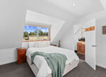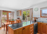Inside, the home is light-filled and thoughtfully arranged across two levels. Downstairs features open-plan kitchen, dining and living, two bedrooms, and a main bathroom that combines a spa bath and laundry-blending everyday function with a quiet touch of luxury. From both the main and side entrance there is a seamless connection between indoor living and the gardens-ideal for entertaining, relaxing, and everyday family life. Upstairs, every window captures trees and mountain views, filling the upper level with natural light, while an office/study nook provides a dedicated work zone without sacrificing living space.