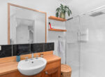 Year-round comfort is covered with a 6.3kW solar system, wood fire, and three reverse-cycle air-conditioners.