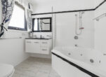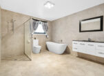 The oversized main bathroom has been beautifully renovated with freestanding bath, floating vanity, open shower, and full-height tiling.