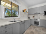 > Functional kitchen overlooking the outdoor entertaining area
