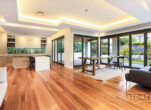 -Open plan living and dining with timber flooring, high ceilings and bi-folding doors flowing out to the covered alfresco.