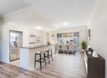 The spacious open-plan layout seamlessly connects the living, dining, and kitchen areas, creating a relaxed and functional space for everyday living. The modern kitchen is equipped with stone benchtops, stainless steel appliances, gas cooking, and ample storage, making it perfect for both quiet nights in and entertaining guests.